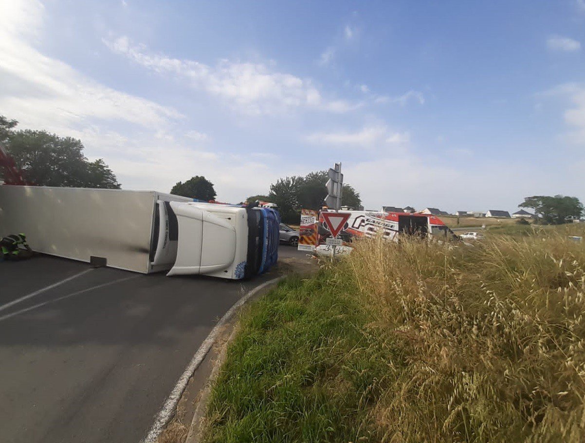 accident au lion d angers un camion se couche en travers d un rond point opera news