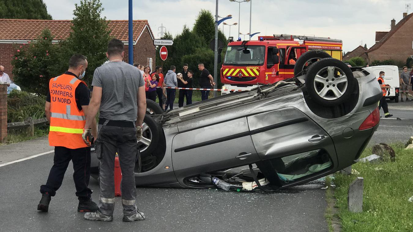 odomez une voiture sur le toit apres un spectaculaire accident
