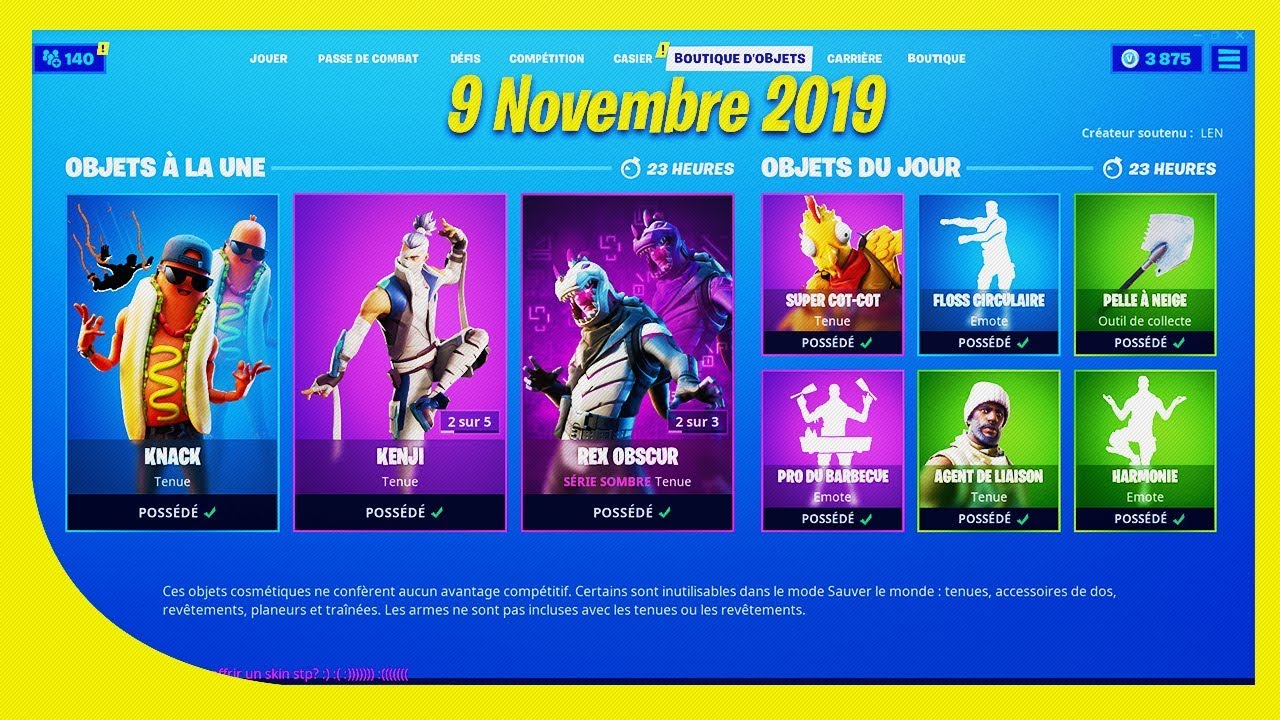 boutique fortnite du 24 janvier 2020 le skin len youtube
