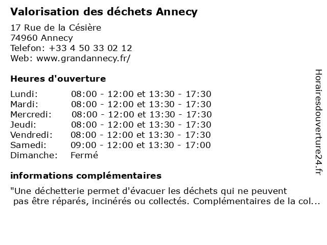 ᐅ horaires d ouverture decheterie ete 6 rue de la frasse a annecy le vieux