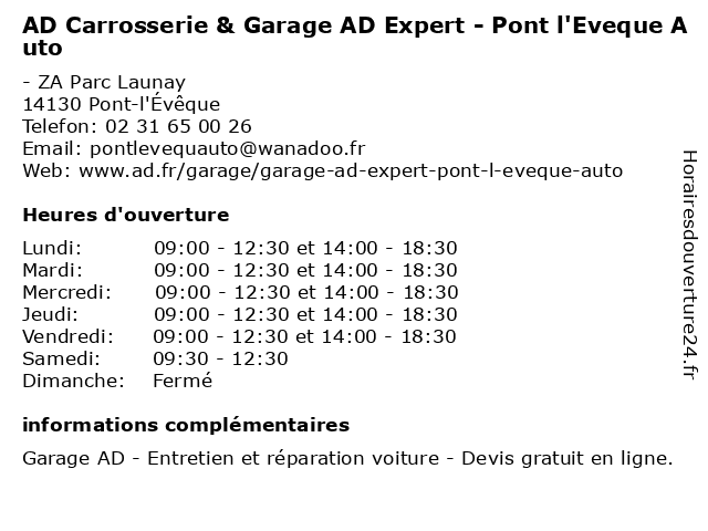 ᐅ horaires d ouverture ad carrosserie et garage expert pont l eveque auto rue georges clemenceau a pont l eveque
