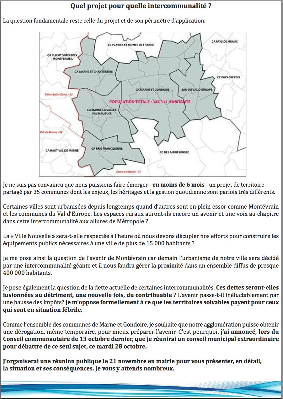 lettre du maire n 9 sur la future intercommunalite le blog de christian robache maire de montevrain