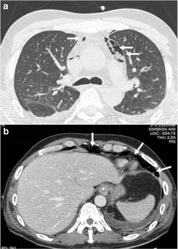 a normal thoraco abdominal ct scan showing linear air shadow around download scientific diagram