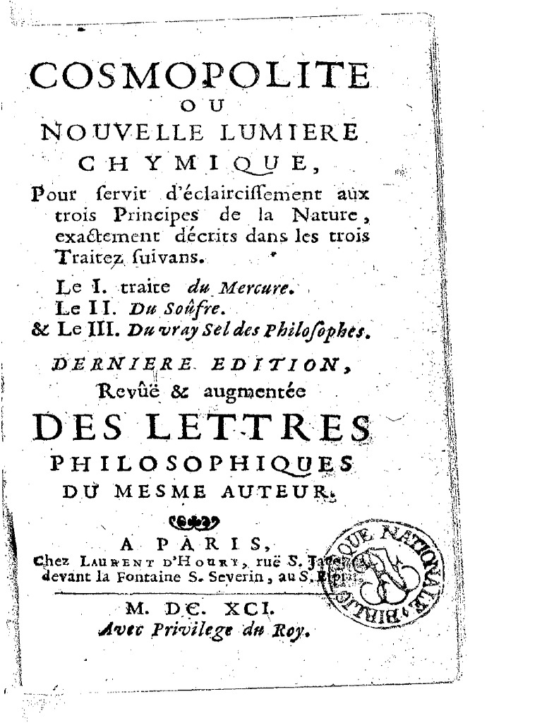 cosmopolite nouvelle lumiere chymique et lettres nature metaux